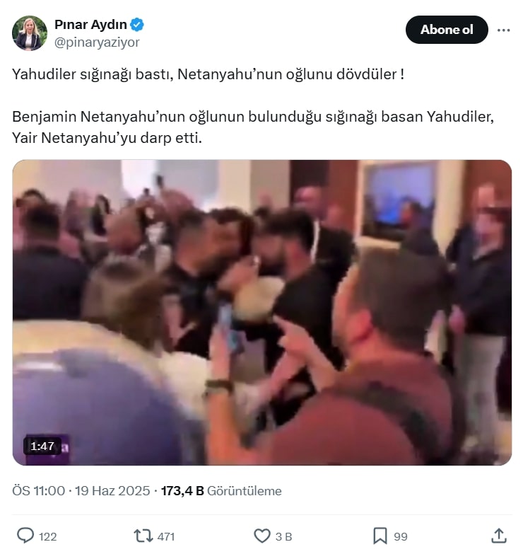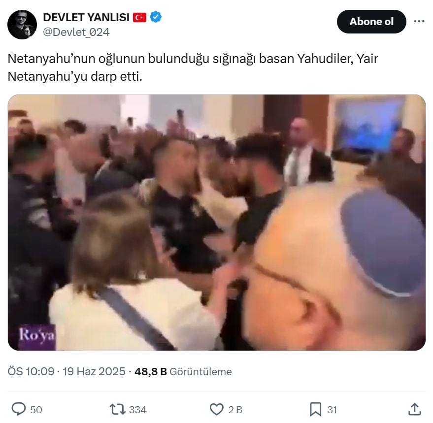 İran–İsrail krizi derinleşirken sosyal medyada her yeni haberi ilgili dezenformasyonlar izliyor. Bu bağlamda, Netanyahu’nun oğlunun kaldığı sığınağı basan Yahudiler’i gösterdiği iddia edilen videoyu inceledik.