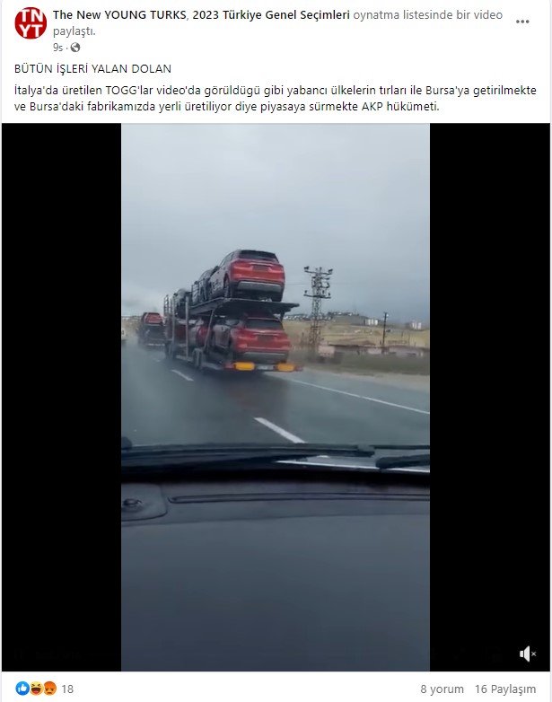 Bununla birlikte videoda, Togg otomobilleri taşıyan tırların üzerindeki ‘Reysaş’ yazısını da arama motorlarında araştırıyoruz. Bu sayede otomobilleri taşıyan firmanın Reysaş Lojistik ve Taşımacılık Şirketi olduğunu anlıyoruz.