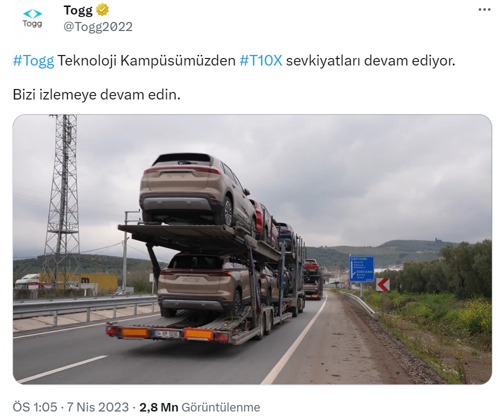 Baktığımız bir diğer kaynak ise, Togg’un resmi Twitter hesabı oluyor. Burada da Togg T10X’in sevkiyat görüntülerinin paylaşıldığını görüyoruz.