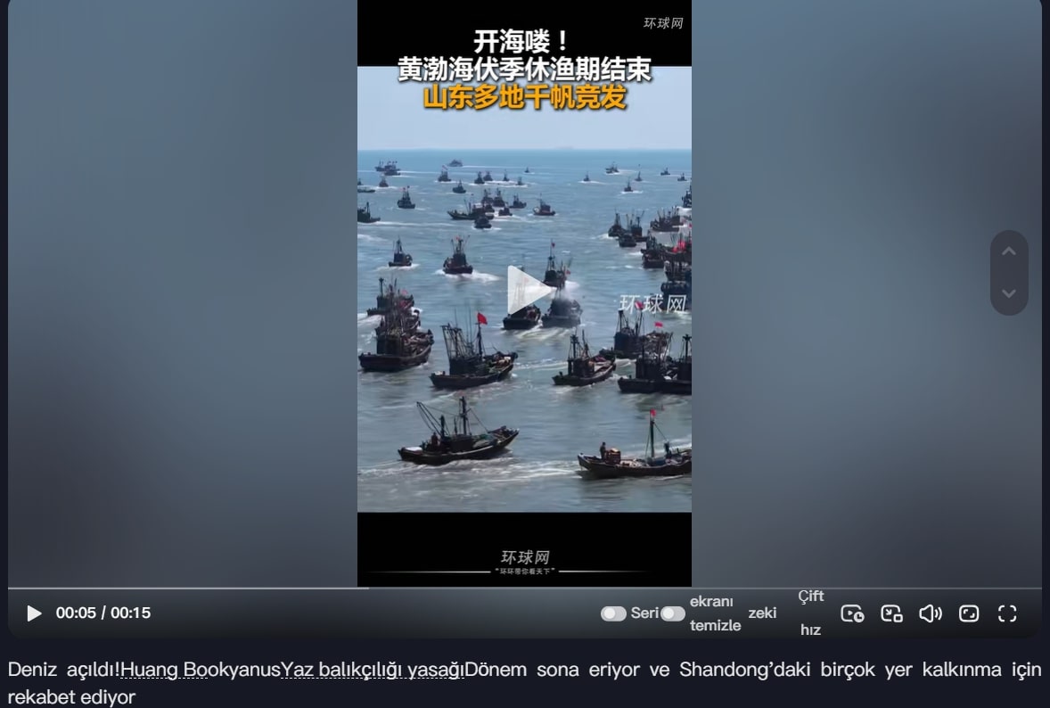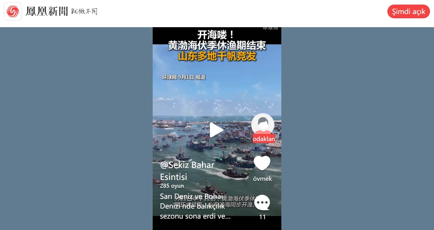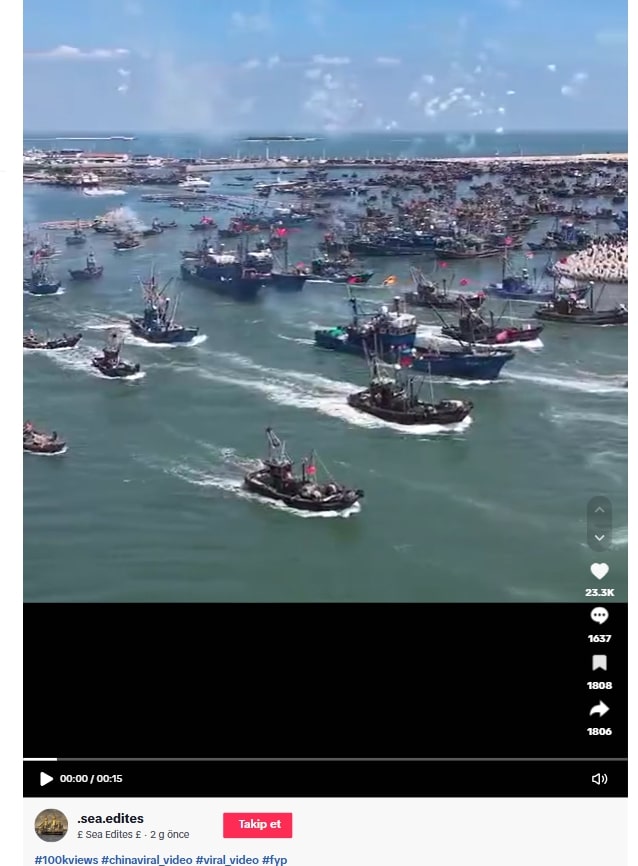 Çin medyası ve sosyal platformlardaki paylaşımlar, videonun Bohai ve Sarı Denizi’ndeki Shidao Limanı’ndan denize açılan tekneleri gösterdiğini doğruluyor.