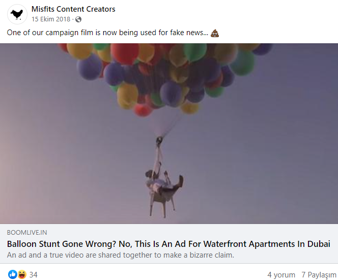 Ek olarak 2016 yılında yayımlanan reklam filminin viral olması ve pek çok kişi tarafından paylaşılması üzerine, Misfits Content Creators Facebook hesabından ilgili içeriği tekrardan paylaşarak, “Eski reklam kampanya filmlerimizden biri şimdi sahte haberler için kullanılıyor.” açıklamasında bulunmuş.