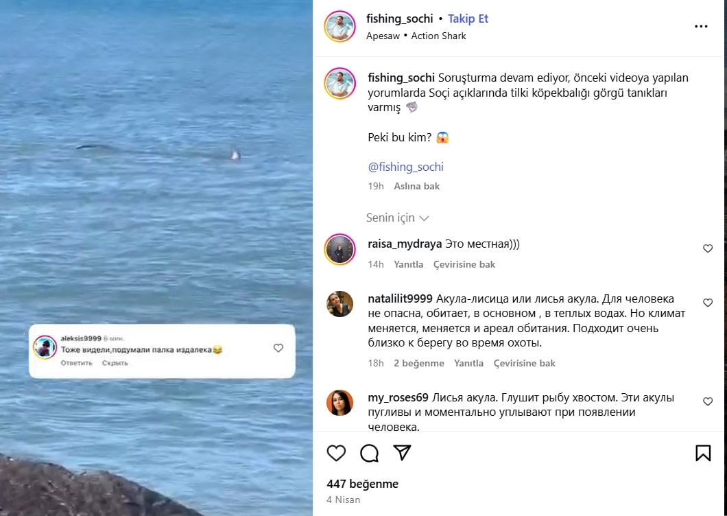 Ulaşabildiğimiz en eski paylaşım ise 2 Nisan’da, @fishing_sochi adlı Instagram hesabından yapılmış. Söz konusu paylaşımda, “Arkadaşlar sizce Soçi’de kim yüzüyor?” ifadeleri kullanılmış.