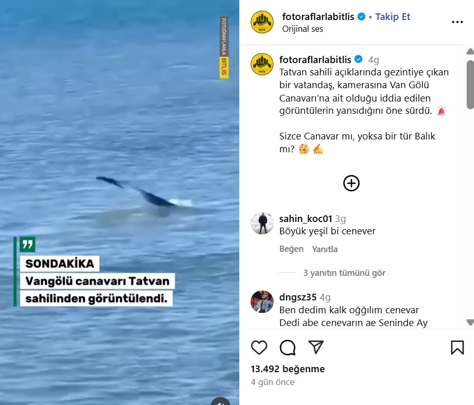 Son günlerde sosyal medyada Tatvan sahili açıklarında gezintiye çıkan bir vatandaşın kamerasına “Van Gölü Canavarı”nın yansıdığı iddia edilen görüntüler hızla dolaşıma girdi. Peki bu görüntüler gerçekten Van Gölü Canavarını mı gösteriyor?