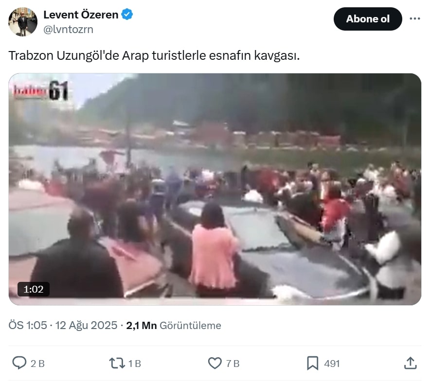 Sosyal medyada dolaşıma giren bir video “Trabzon Uzungöl’de Arap turistlerle esnafın kavgası” benzeri açıklamalarla paylaşılmaya başlandı. Yorumlarda turizm, Arap turistler ve yerel halk ilişkisi üzerine tartışmalar yoğunlaştı. Bu içerik, özellikle yabancı turist karşıtı söylemleri desteklemek için paylaşıldı.