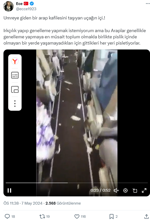 Sosyal medyada dolaşıma giren bir video, umreye giden Arap kafilesini taşıdığı iddiası ile paylaşılarak kirliliğe dikkat çekilmiş. Söz konusu iddianın doğruluğunu inceledik.