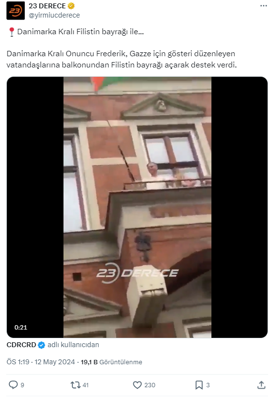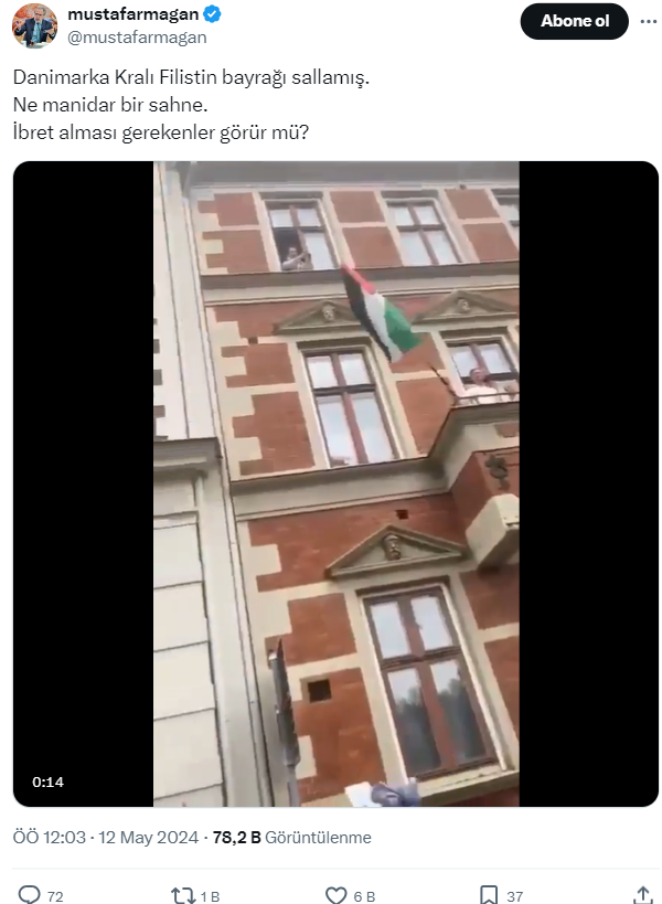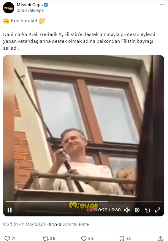 Videoda Filistin bayrağı sallayan kişinin Danimarka kralı olduğu iddiası