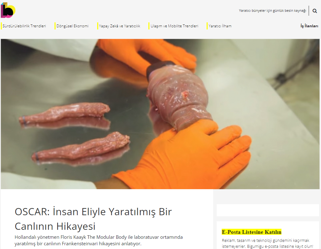 Anahtar kelime taraması yaparak işe başlıyoruz. Çünkü eğer böyle bir sunum gerçekten varsa global haberlere de konu olması gerekir. Karşımıza Bigumigu’nun 2016 yılındaki haberi çıktı. Başlık: “OSCAR: İnsan Eliyle Yaratılmış Bir Canlının Hikayesi”. İçeriğe bakılırsa Oscar, Hollandalı yönetmen Floris Kaayk’ın The Modular Body isimli hikayesinin 2 ana karakterinden biri. Diğer karakterse Cornelis Vlasman isimli bir biyolog. İddia videosunda Oscar’ı tanıtan karakter.