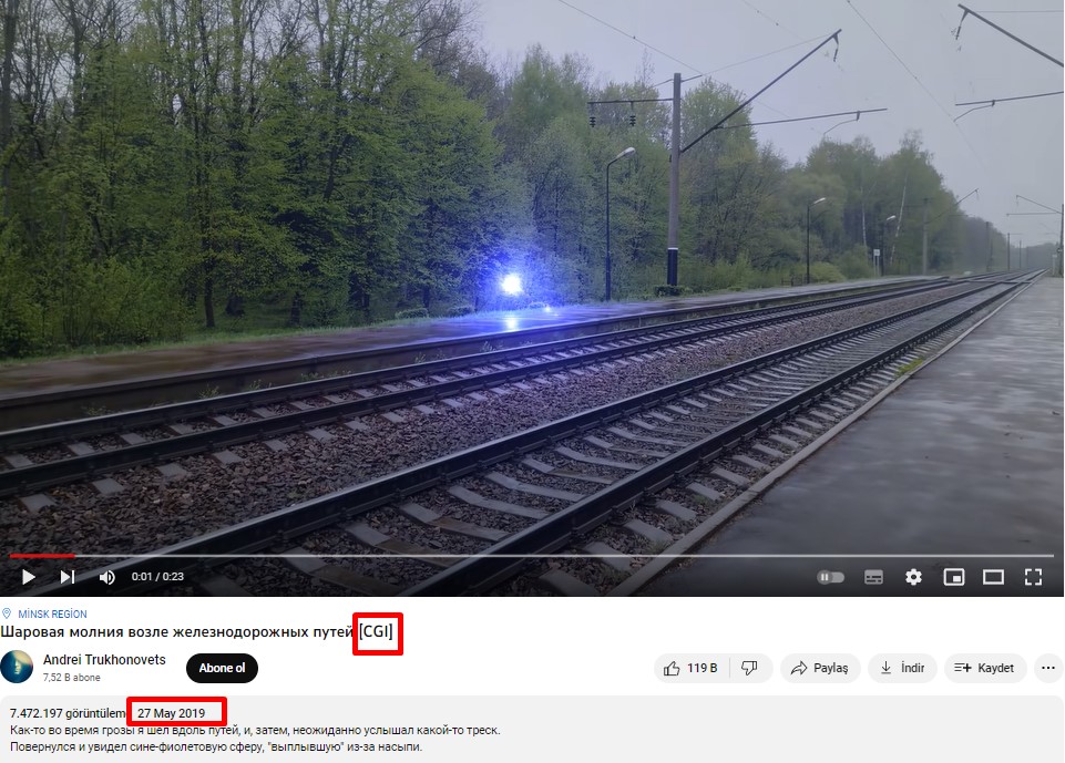Videodan aldığımız ekran görüntülerini tersine görsel arama metoduyla incelediğimizde, videonun yıldırım topu olmadığı sonucuna ulaşıyoruz. Söz konusu video, görsel efekt aracılığıyla CGI kullanılarak oluşturulmuş. Bilgisayar programlarıyla dijital düzenleme yapıldığını anladığımız görüntü, Andrei Trukhonovets tarafından hazırlanmış.