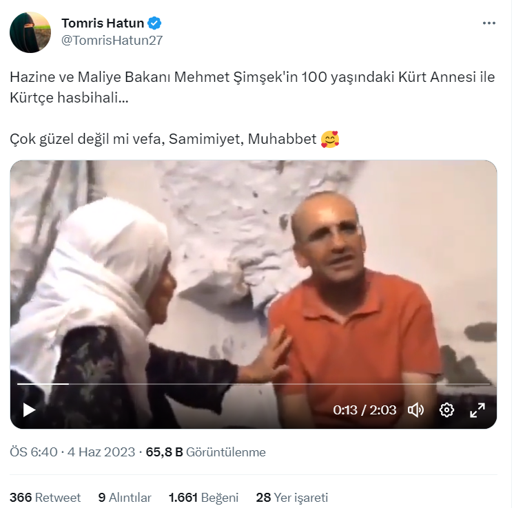 Hazine ve Maliye Bakanı Mehmet Şimşek'in 100 yaşındaki Kürt annesi ile Kürtçe hasbihali…