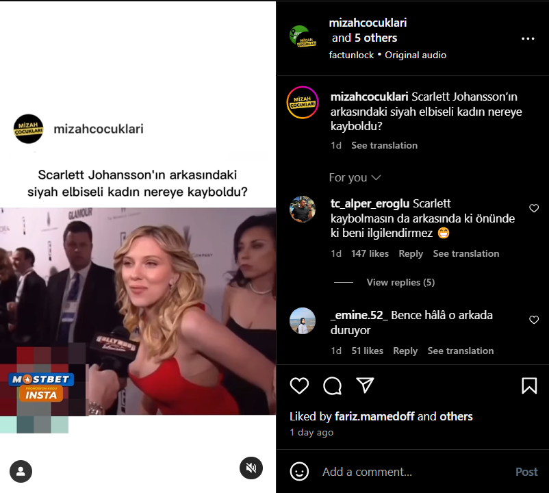 Kasım 2023’te katıldığı The Tonight Show Starring Jimmy Fallon’da Scarlett Johansson’a bu viral video izletilmiş. Johansson burada arkasında kaybolduğu iddia edilen kadının annesi olduğunu belirtmiş ve ’15 yıldır onu arıyorum’ diyerek konuyu tiye almış.