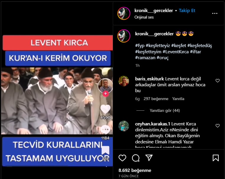 İddia paylaşımlarındaki görüntülerin, Levent Kırca’nın Kuran okuduğu anı gösterdiği söylendi.
