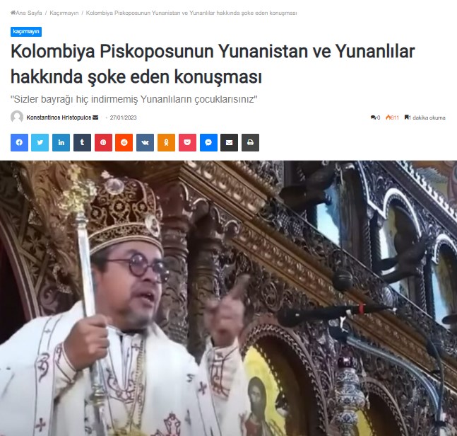 Bunun yanı sıra bir Primenews.press’in papaz ile alakalı ilgili haberine ulaşıyoruz. Haberde bu kişinin Kolombiya Yunan Psikoposu Luis Antonio Torres Esquirrell olduğunu anlıyoruz. Makalede papazın söylediği konuşmanın tam metni verilmekte: