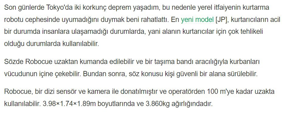 - Japonya’da üretilen bu uzaktan kumandalı robot, itfaiye ekiplerinin giremediği yerlerde, yaralıyı alıp güvenli bir bölgeye getirme imkanı sağlıyor.