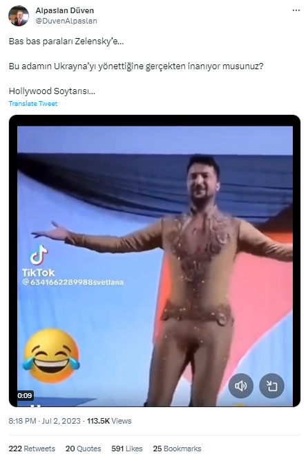 - Videoda dans eden oryantal sanatçısı Ukrayna Devlet Başkanı Volodimir Zelenski değil, Arjantinli dansçı Pablo Acosta.