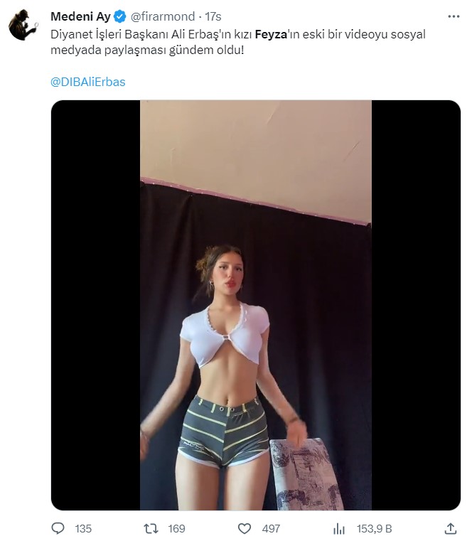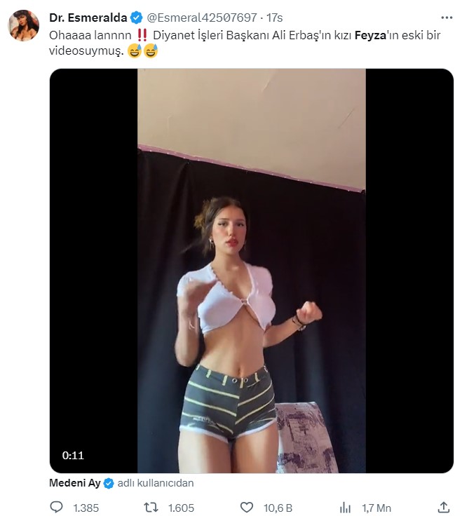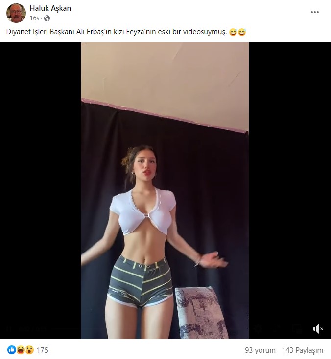 Facebook ve X’te birçok kullanıcı tarafından paylaşılan bir video kısa sürede binlerce etkileşim aldı. Söz konusu görüntülerde müzik eşliğinde dans eden bir kadının, Diyanet İşleri Başkanı Ali Erbaş’ın kızı Feyza Erbaş olduğu iddia edildi.