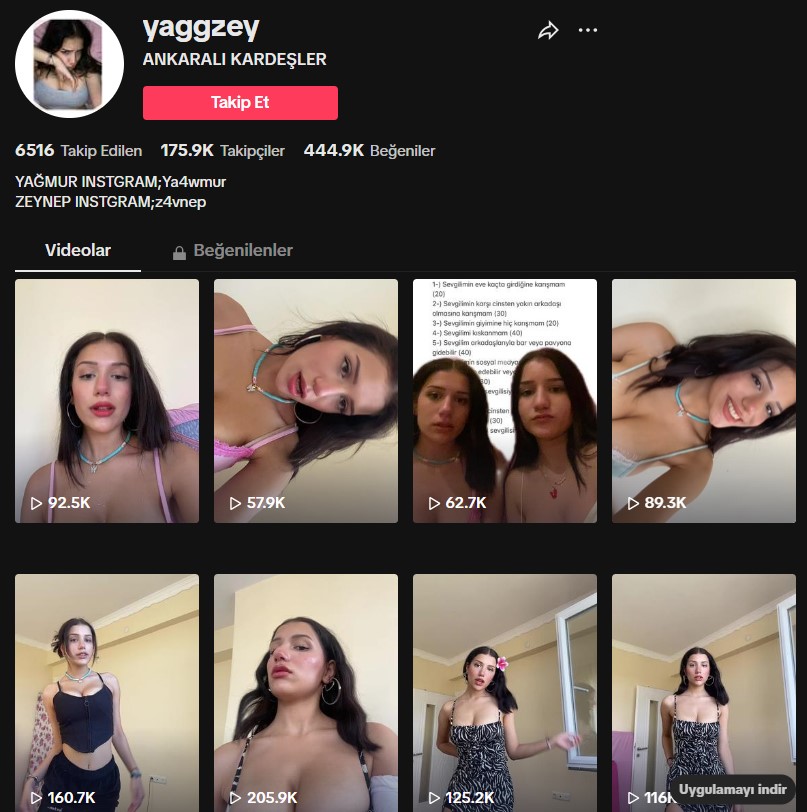 - “ANKARALI KARDEŞLER” isimli TikTok hesabındaki paylaşımları “Yağmur” ve “Zeynep” isimli iki kişinin yaptığı biliniyor.