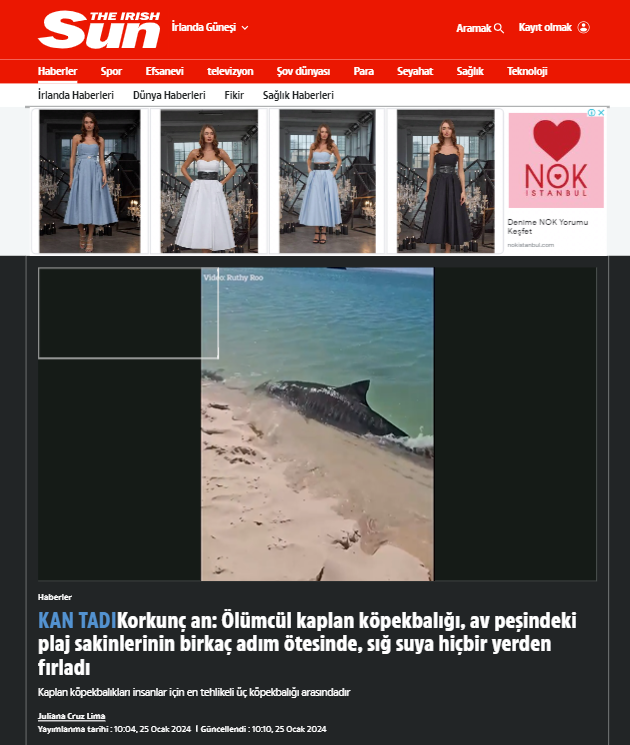 İki makalede de, paralel olarak, videonun Avustralya’nın batısındaki Monkey Mia plajında kaydedildiği bilgisi yer alıyor. Kaplan köpek balığının sahile kadar gelmesinin sebebi ise bir deniz kaplumbağasını avlıyor olması.