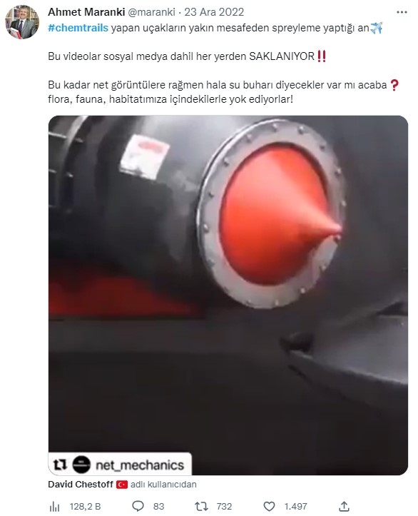 “#chemtrails yapan uçakların yakın mesafeden spreyleme yaptığı an. Bu videolar sosyal medya dahil her yerden SAKLANIYOR. Bu kadar net görüntülere rağmen hala su buharı diyecekler var mı acaba? Flora, fauna, habitatımıza içindekilerle yok ediyorlar!”