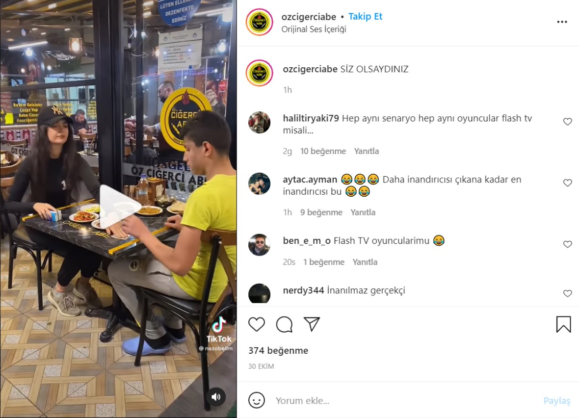 Öncelikle videonun işletme tarafından çekilip çekilmediğini anlayabilmek için Öz Ciğerci Abe’nin sosyal medya hesaplarına göz attık ve konuya dair bir açıklama metninin kendi Instagram sayfasında yayımladığını ayrıca bir de video paylaşıldığını gördük.