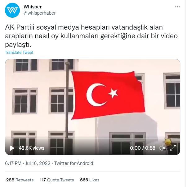 - Videonun Araplara AK Parti’ye nasıl oy vereceklerini göstermek amacıyla hazırlandığı iddiası gerçeği yansıtmıyor.