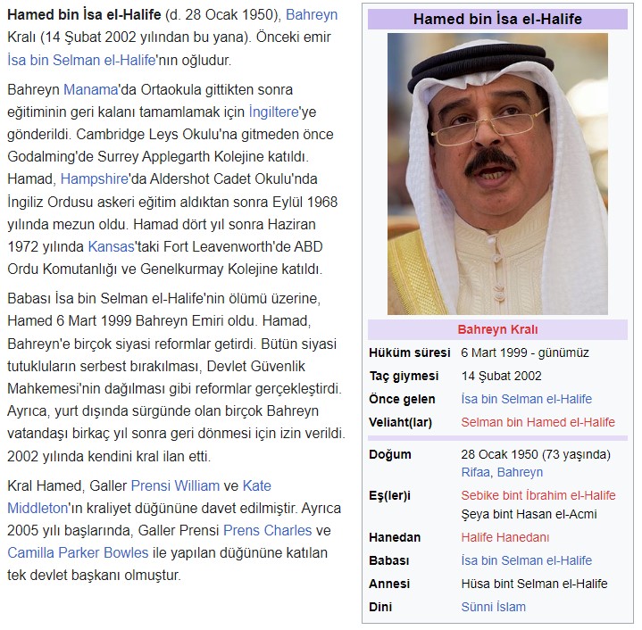 Öte yandan videoda iddia edilen kişi ile Bahreyn Kralı Hamed bin İsa el-Halife yan yana getirildiğinde herhangi bir benzerlik olmadığı görülüyor.