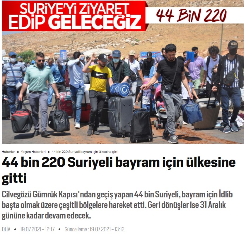 - Temmuz 2021’de kaydedilen videoda Suriyeli sığınmacıların, bayram ziyareti için ülkelerine gittiği görülüyor.