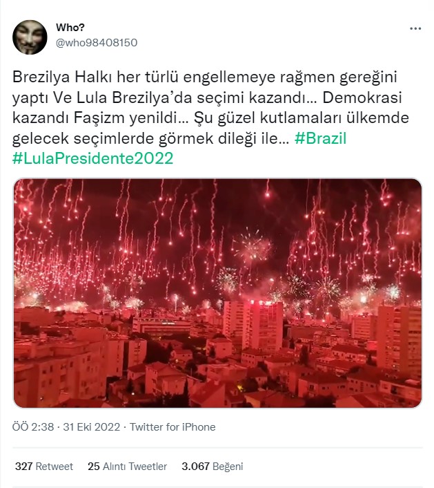 - Video, Brezilya’daki seçim kutlamalarını göstermiyor.