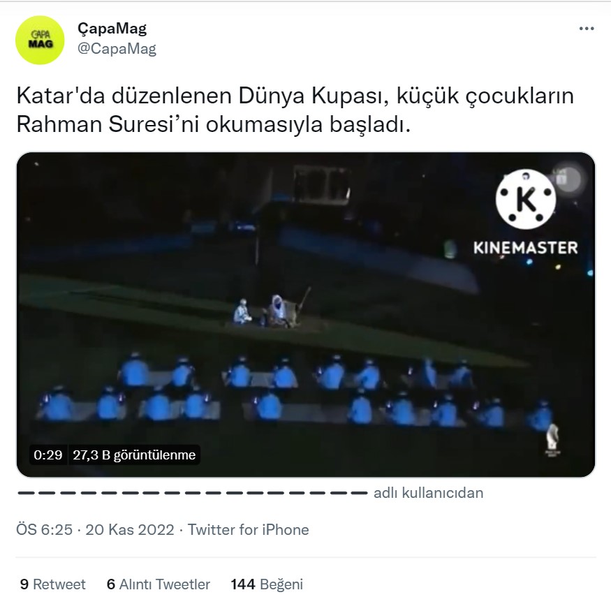 Dünya Kupası, bu yıl Katar’da düzenleniyor. Sosyal medyada dolaşıma giren bir iddiaya göre, paylaşıma eklenen video Dünya Kupası açılışında çekilmiş.