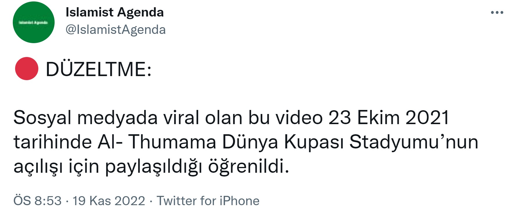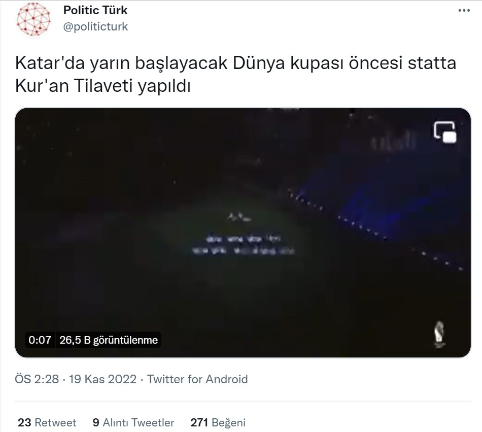 - İddia videosu, Katar’ın Doha eyaletinde yer alan Al Thumama Stadyumu’nun 2021 ekimindeki açılışından alınmış.