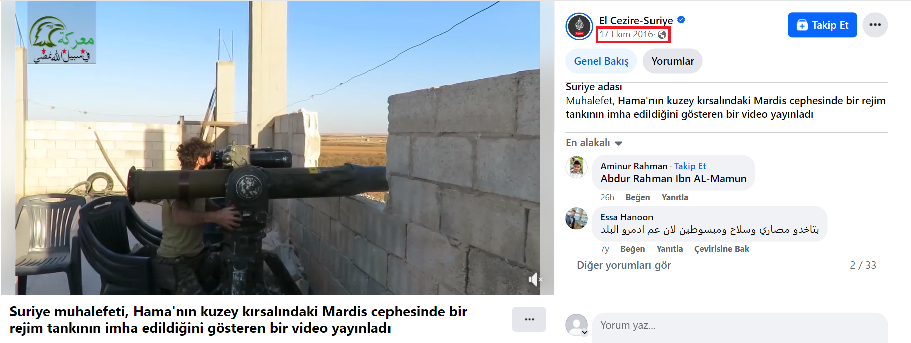 - Videonun 2016 yılında Suriye’de kaydedildiğini gösteren haberler mevcut.