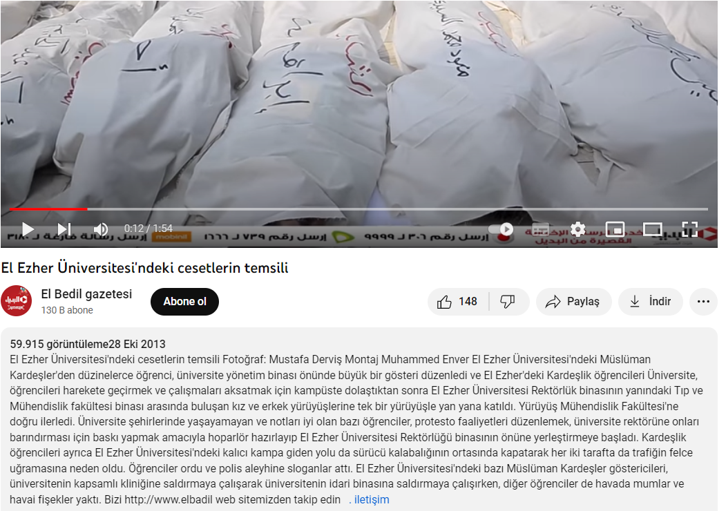Mısır’ın El Badil gazetesinin YouTube hesabında paylaştığı görüntülerin altına yazdığı açıklama metnine göre video El Ezher Üniversitesi’ndeki Müslüman Kardeşler isimli öğrenci grubu tarafından düzenlenen gösteriden.