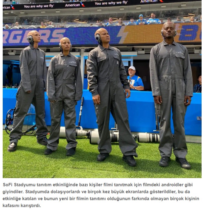 - Videodaki kişiler eylül ayında vizyona girecek olan ‘The Creator’ filmi için stadyumda bulunan reklam figüranları.
