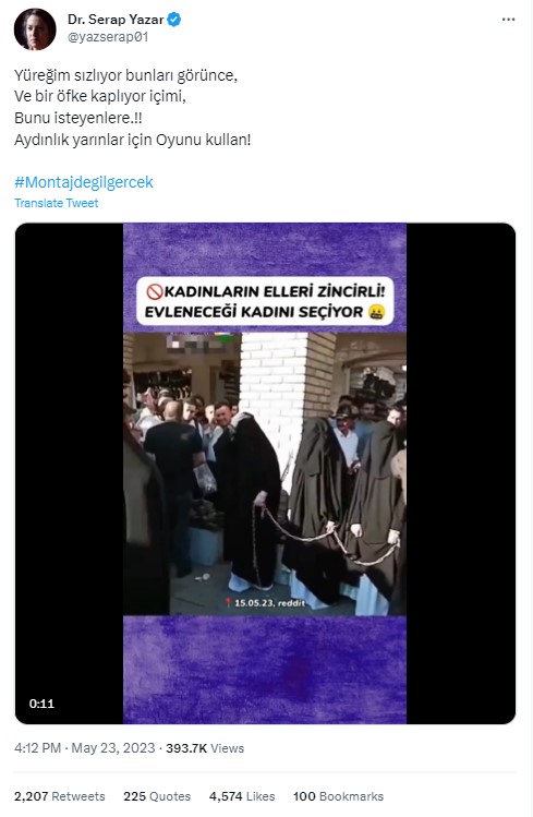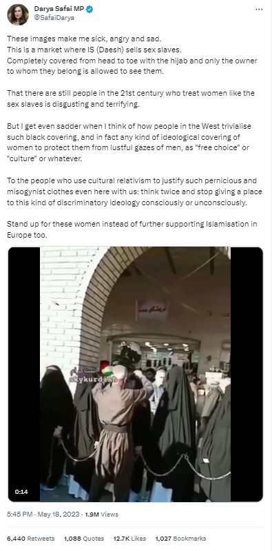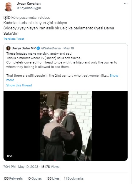 Sosyal medyada videoyu paylaşan kullanıcıların Belçika Parlamento Üyesi Darya Safai’nin tweet’ini alıntıladığı görülüyor. Safai 18 Mayıs 2023’te videoyu paylaşmış ve üzerine şu notu düşmüş: