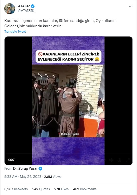 Geçtiğimiz günlerde sosyal medyada yayılan videoda bir kişinin kara çarşaflı ve peçeli kadınların yüzüne tek tek baktığı görülüyor. Video, sosyal medyada paylaşılırken bu kişinin ‘köle pazarından kadın seçtiği’ veya ‘elleri zincirli kadınlar arasından evleneceği kişiyi seçtiği’ yorumları eklenerek paylaşılmış.