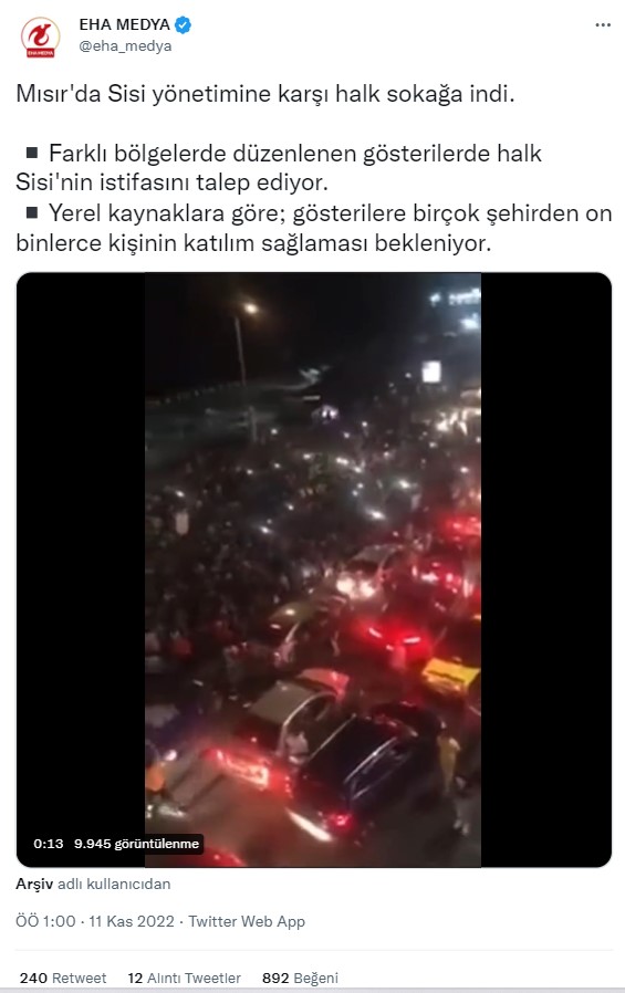 Videonun Mısır’daki son protestoları gösterdiği iddiası