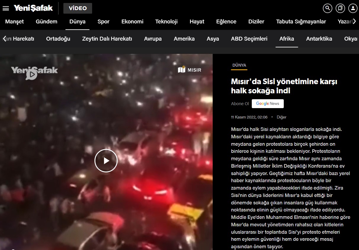 Video, Mısır’ın Devlet Başkanı Abdülfettah El Sisi’ye yönelik gerçekleştirilen son protestoları göstermiyor.