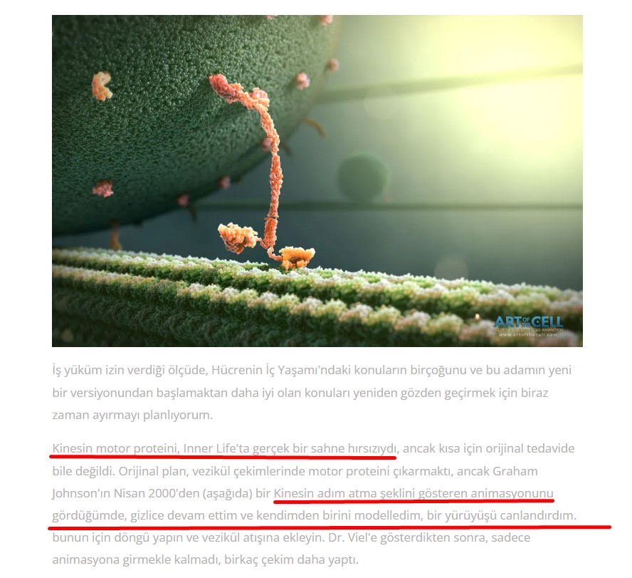 - Animasyon, medikal sanatçı John Lieber’ın 2006’daki çalışmasında yer verdiği kinesin proteininin temsilini gösteriyor.