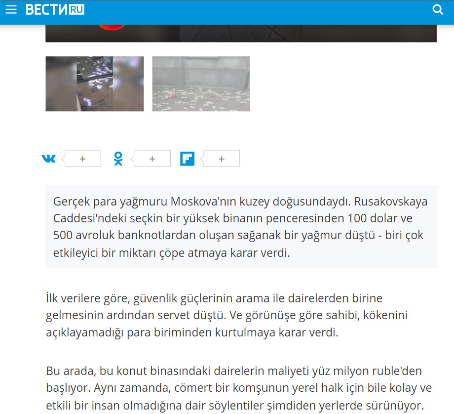 Rusya’da yapılan bir ev baskınında çekildiği söylenen video, sosyal medyada yayılıma girdi. Yerlere saçılmış paraları gösteren videonun Türkiye’ye gelen Rus arama kurtarma personelinin enkazdan çaldığı paraları gösterdiği iddia edildi.