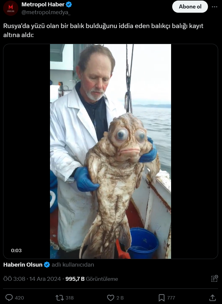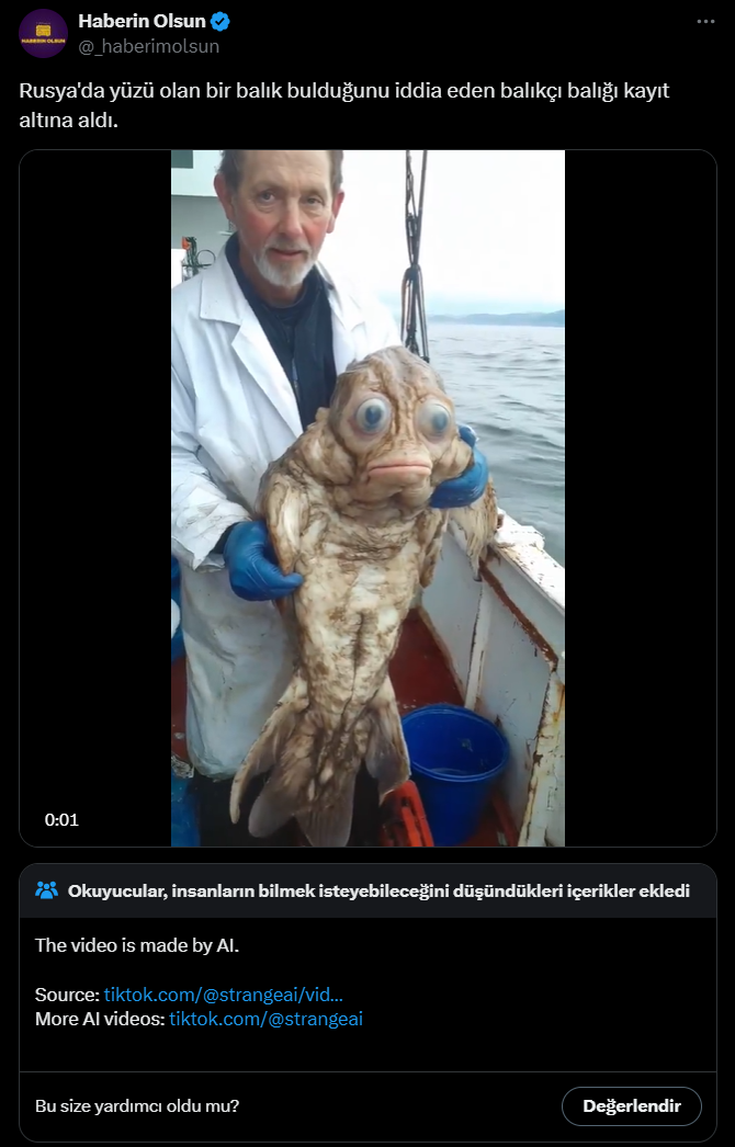 Sosyal medyada dolaşıma girip kısa sürede farklı platformlarda milyonlarca görüntüleme alan bir video ile Rusya’da yüzü olan bir balık bulunduğu iddia edildi.