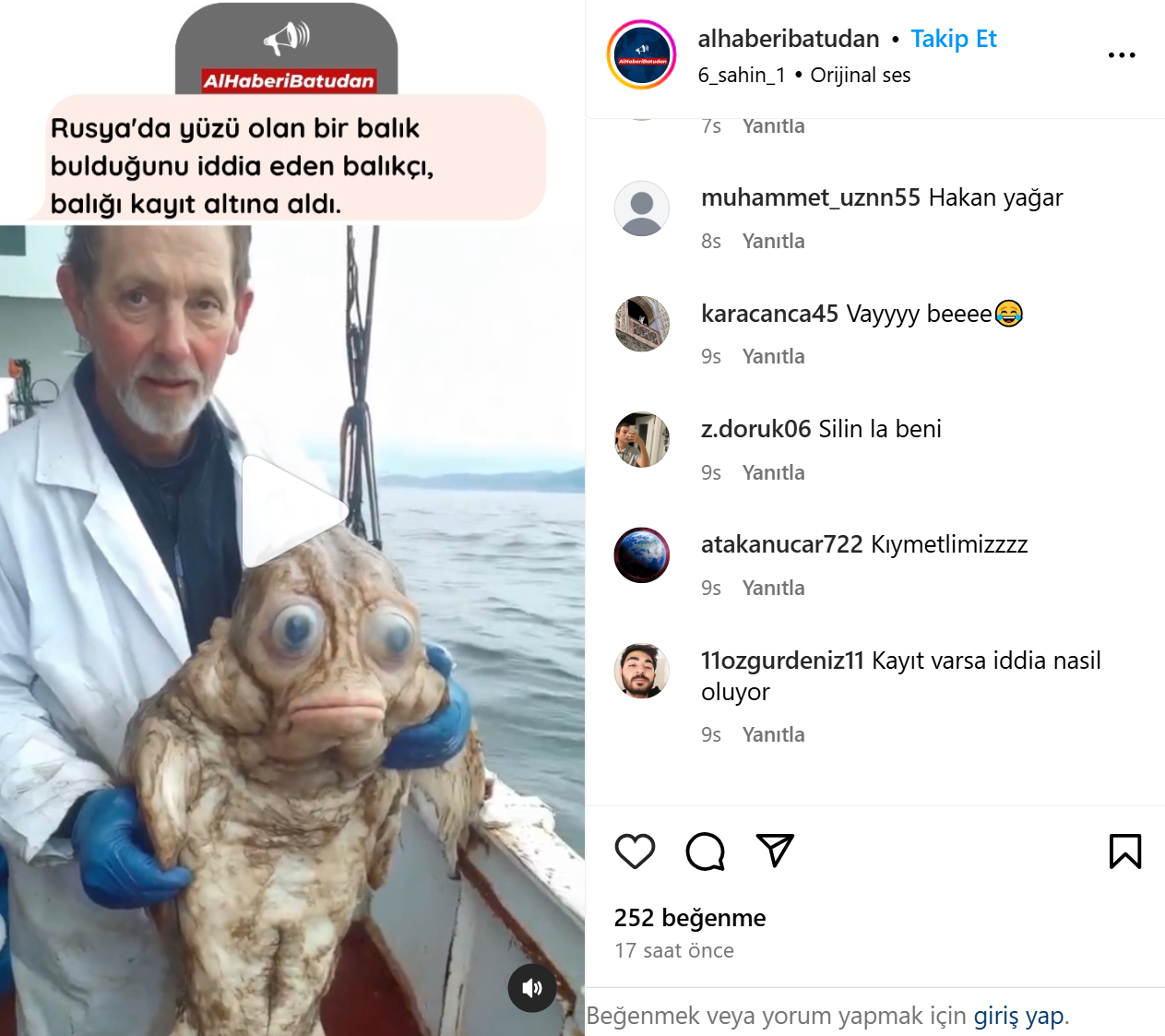 Videonun Rusya’da yakalanan ve sözde insan yüzüne benzeyen bir balığı gösterdiği iddiası