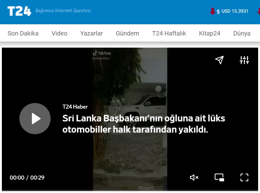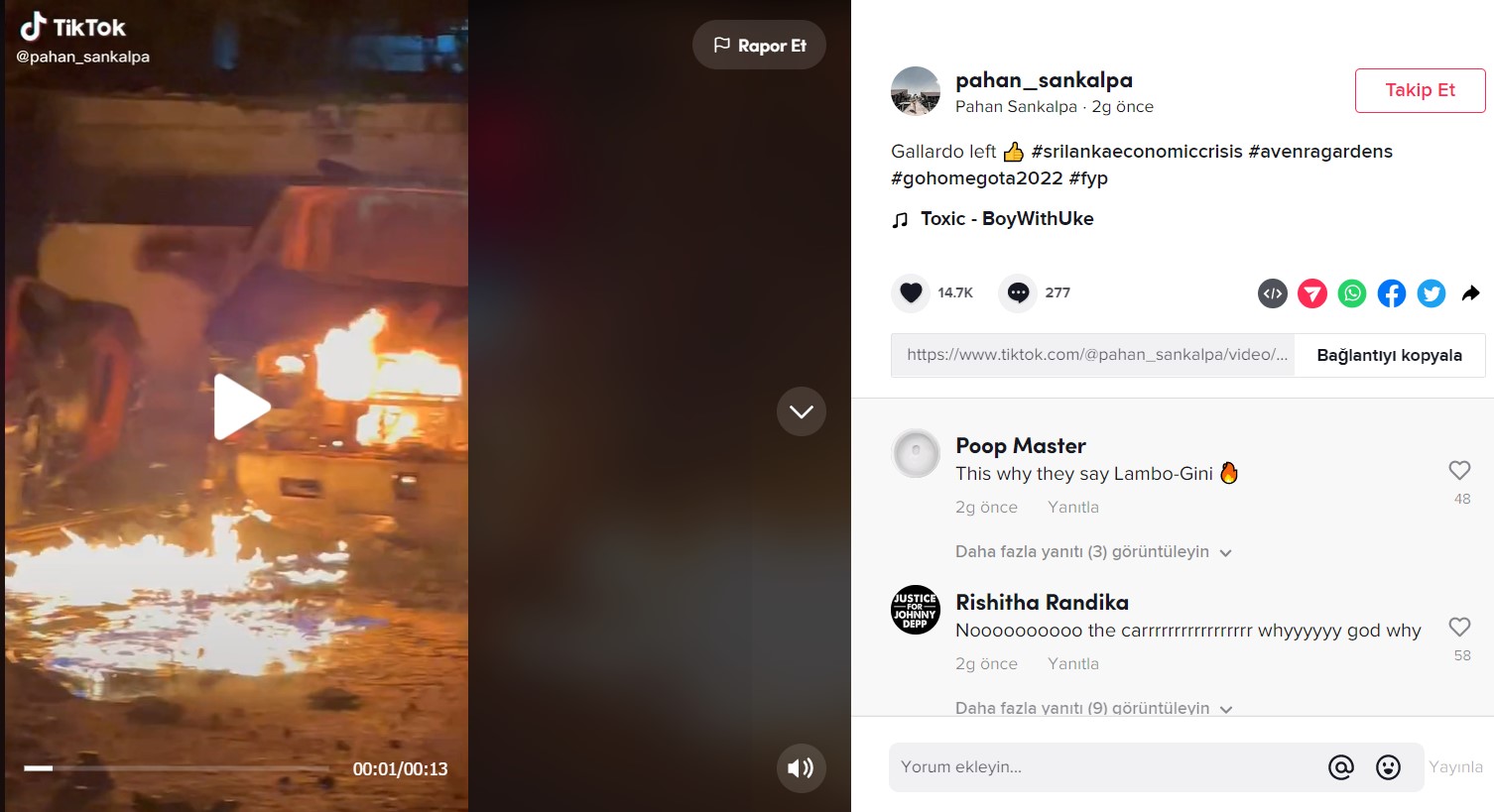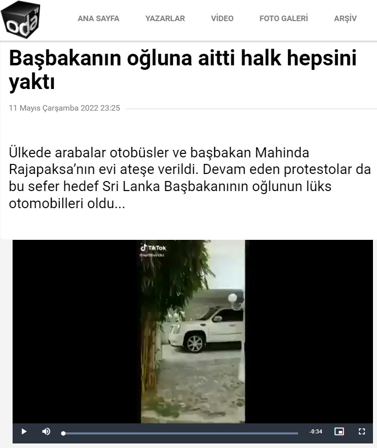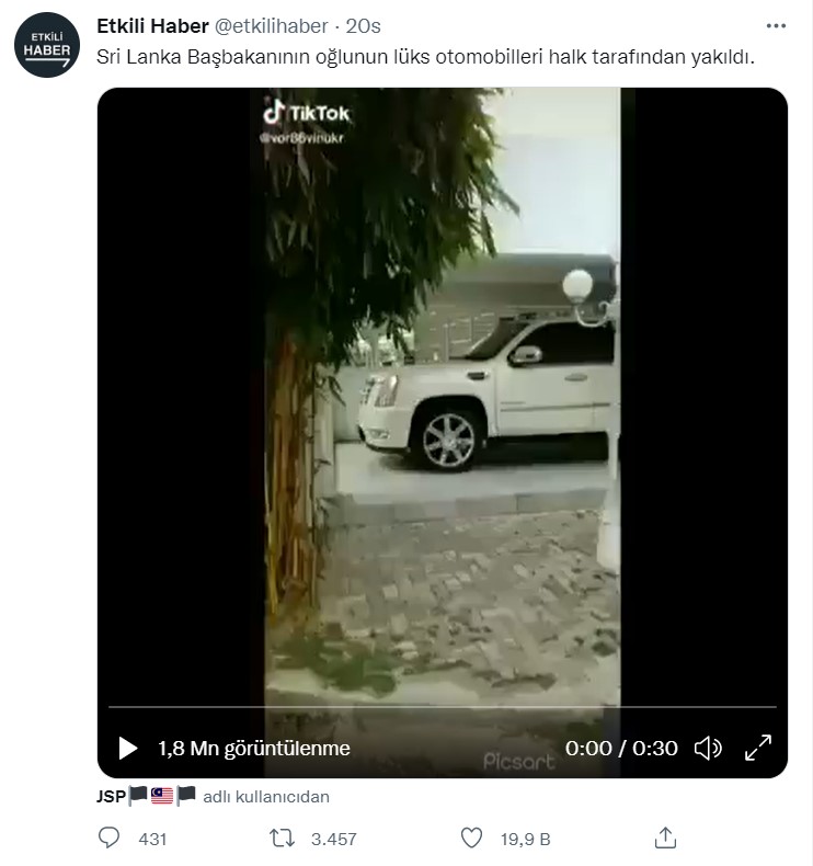 Videonun Sri Lanka Başbakanı’nın oğlunun lüks arabalarının yakıldığı anı gösterdiği iddiası