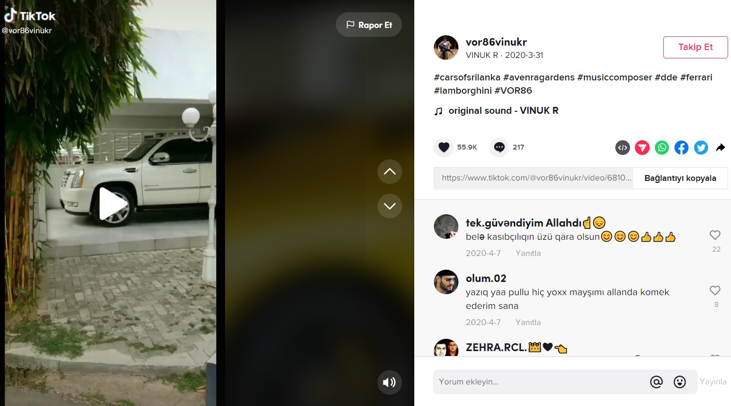 İlk TikTok kullanıcısı tarafından paylaşılan videoyu inceledik. Videonun sol üst köşesinde bulunan “@vor86vinukr” kullanıcı adını aradığımızda lüks arabaların videosunu paylaşan bu kullanıcının hesabına ulaşıyoruz.