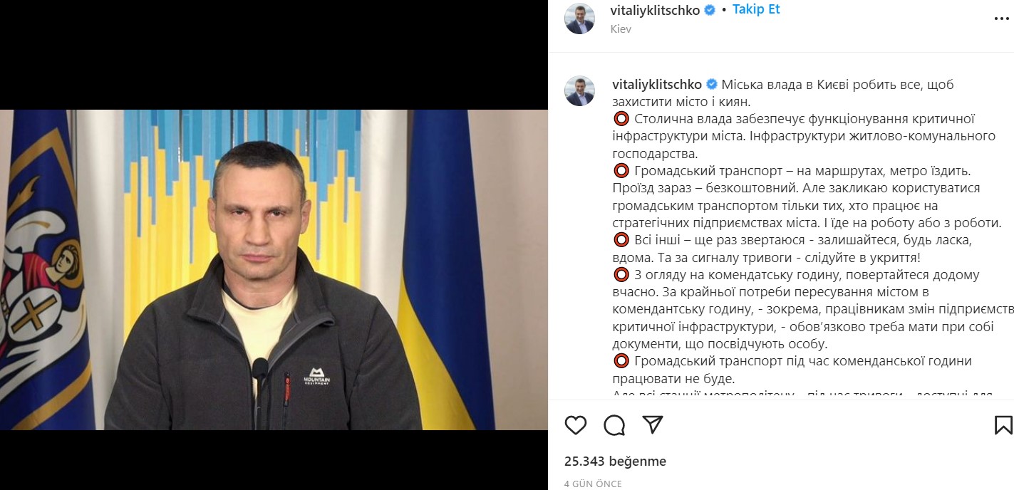 Kiev Belediye Başkanı Vitali Kliçko’nun, Instagram hesabından gündeme ilişkin aktif olarak paylaşım yaptığı anlaşılıyor.