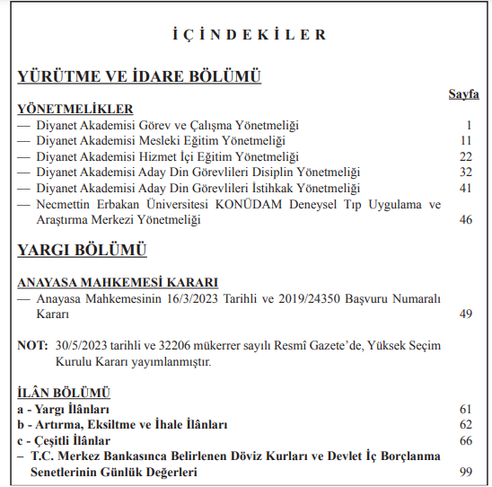 31 Mayıs 2023 tarihli Resmi Gazete içeriğine baktığımızda “Cumhurbaşkanı Kararı” yer almıyor.