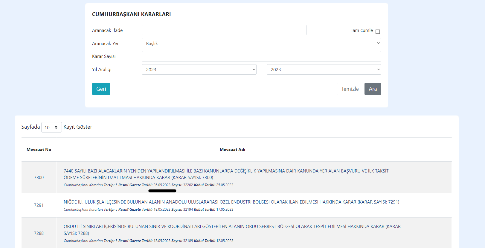 Mevzuat Bilgi Sistemi’ne göre ise Cumhurbaşkanı son olarak 26 Mayıs 2023 tarihinde karar almış.