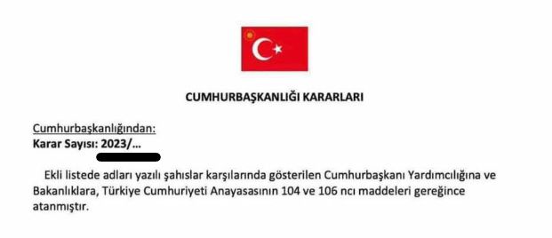 Yeni bakanların ve cumhurbaşkanı yardımcılarının atandığı iddiası