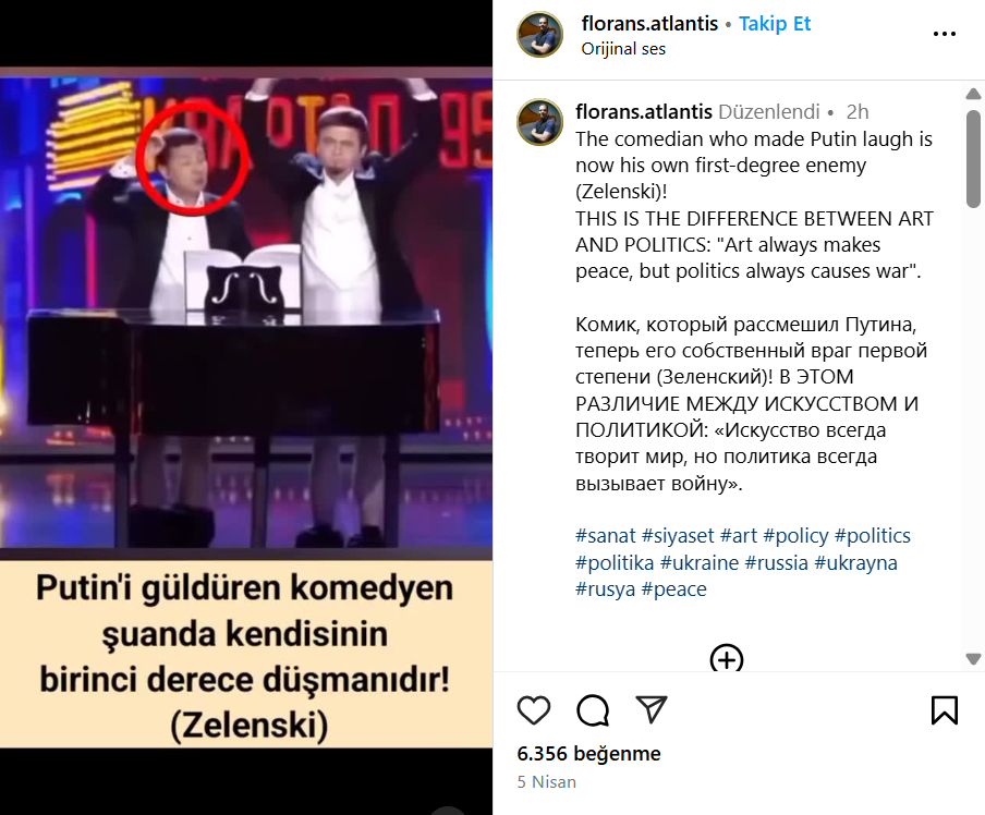 Sosyal medyada dolaşıma giren bir video, Rusya Devlet Başkanı Putin’nin Ukrayna Devlet Başkanı Zelenski’nin komedyenlik yaptığı gösterisine güldüğü eski bir görüntü olduğu iddiasıyla paylaşılıyor.