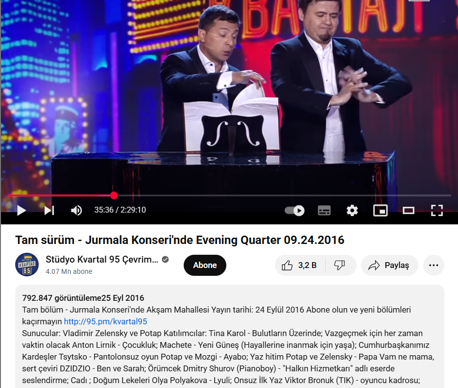 Zelenski’nin videosu, 24 Eylül 2016 tarihinde yayımlanan programdan alınmış.