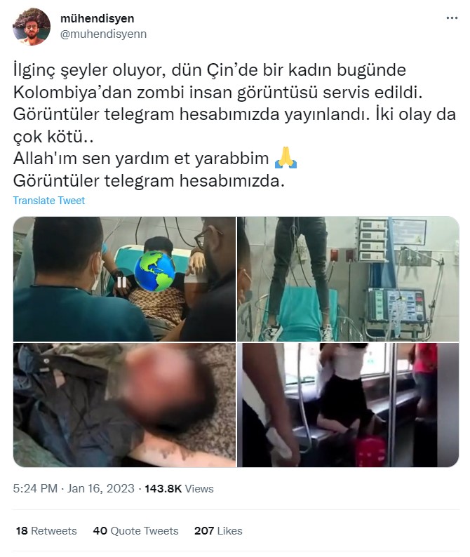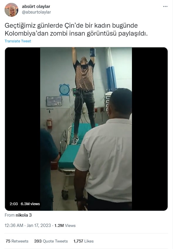 Geçtiğimiz haftalarda ‘zombi insanları’ gösterdiği iddiasıyla sosyal medyada çeşitli videolar paylaşıldı. Bu videolardan iki tanesi özellikle yayılım gösterdi. Bunlardan ilki Kolombiya’da kaydedildiği söylenen ve bir sedyede ayakta durarak ilginç hareketlerde bulunan bir adamı gösteren videoydu. İkincisi ise Çin’de metroda bir kadının bir adamı ısırdığını, çığlık attığını ve son olarak metro zeminine akan kanı yaladığını gösteren videoydu.