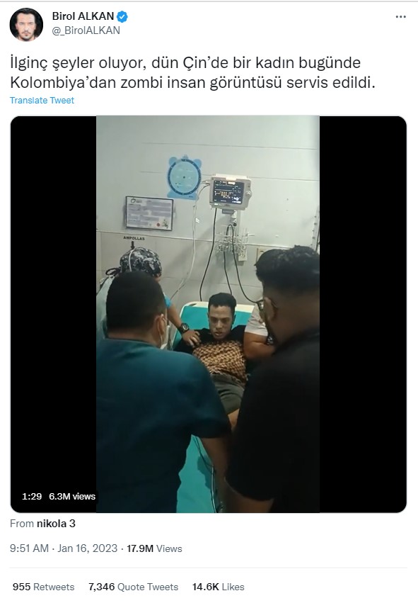 Söz konusu iddiaya kaynak olarak kullanılan videonun kullanıldığı haberde, Kolombiya’nın Barranquilla kentindeki bir hastanede sağlık çalışanları tarafından kontrol altına alınmaya çalışılan videodaki adamın neden o halde olabileceğine dair varsayımlardan bahsedilmiş.
